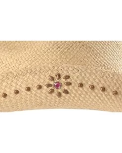 - Pink leatherette hat band with studs, rhinestones, & center concho detail