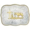 - Silver decorative-etched buckle, tips, and loop
